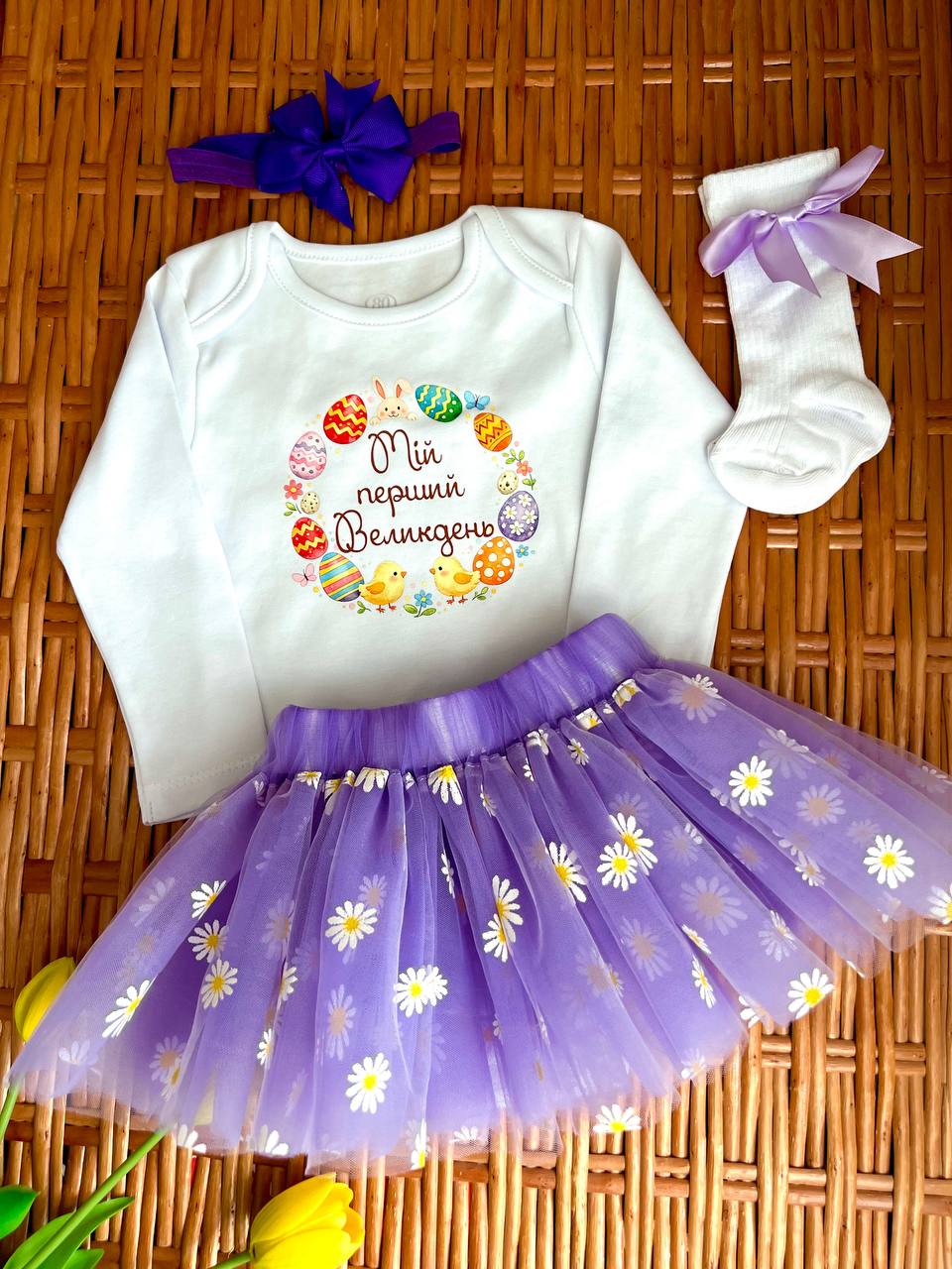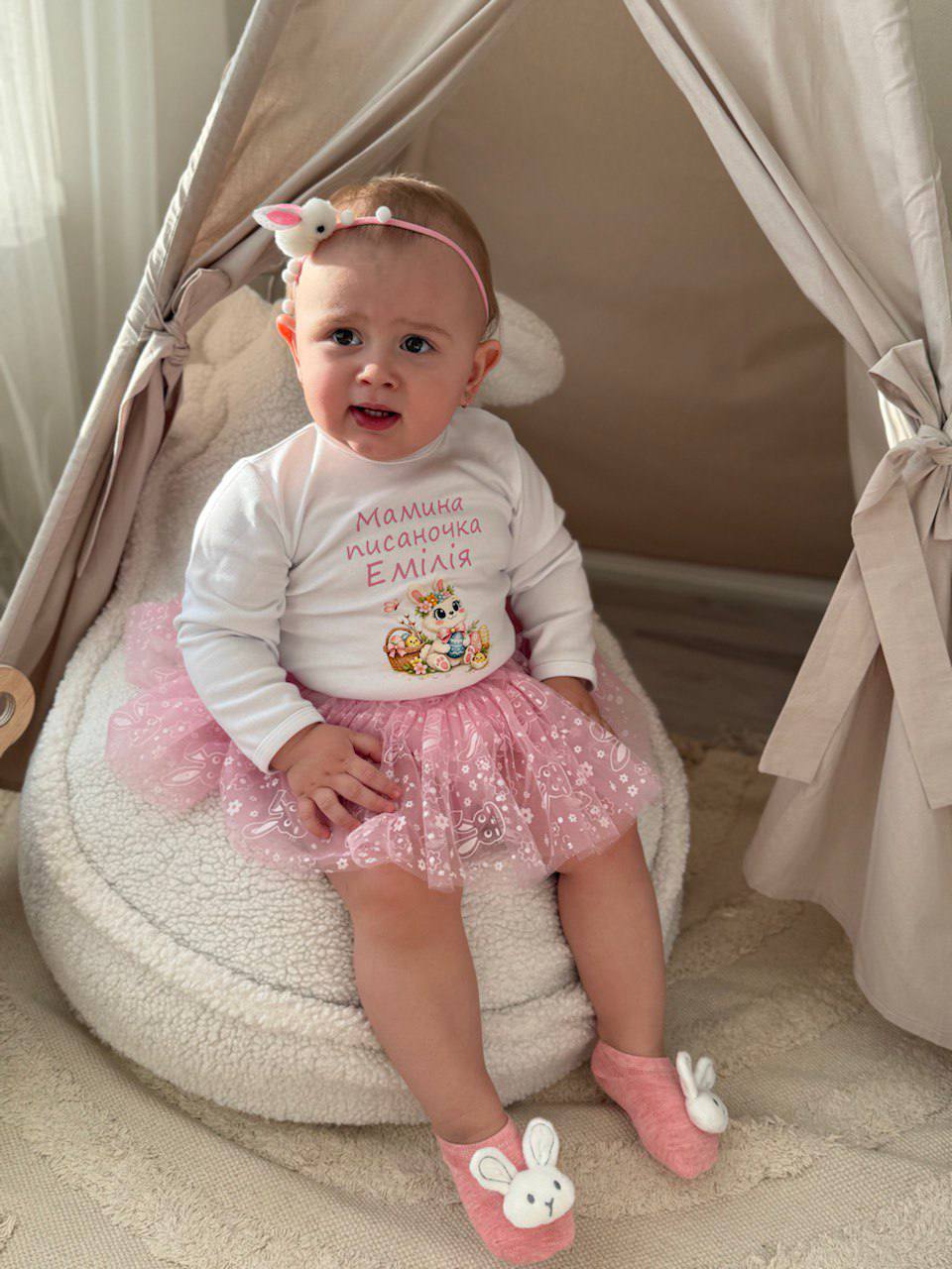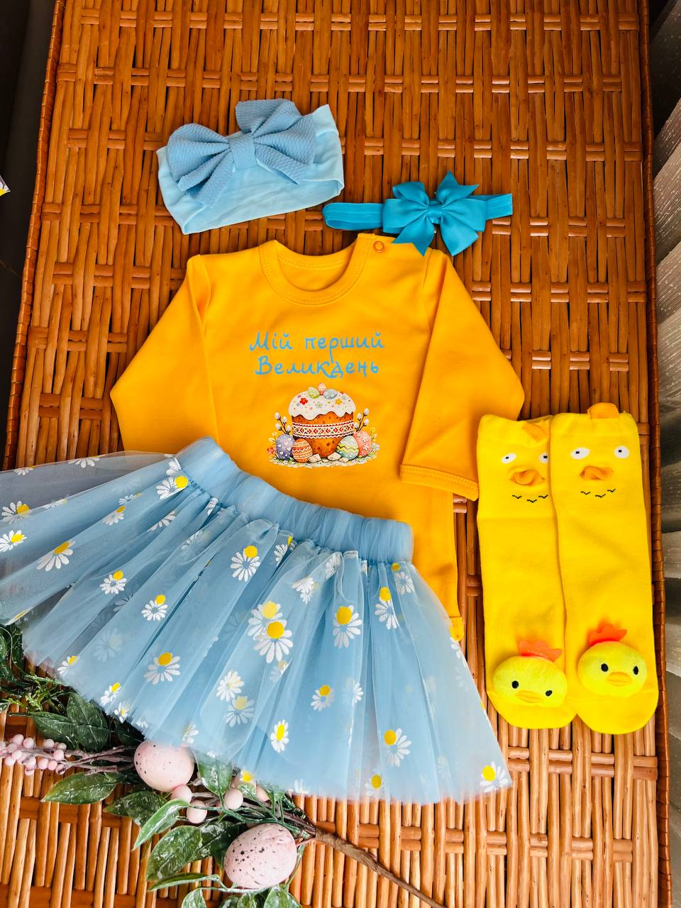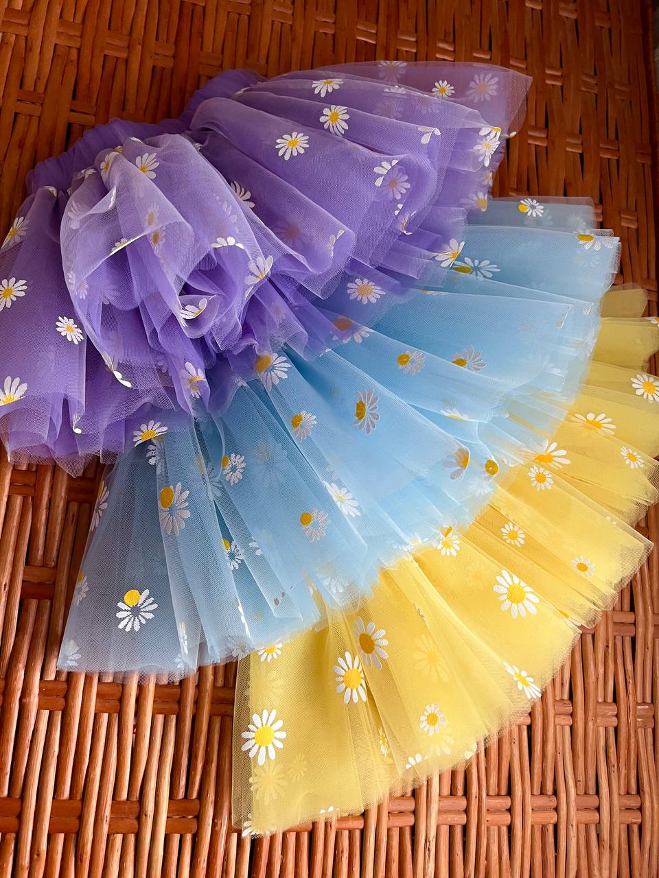 Ніжна, легка та дуже святуова спіничка для маленьких модниць. Виконана з мякого фатну-євросітки. Принти ромашок по-справжньому сворюють весняний образ.