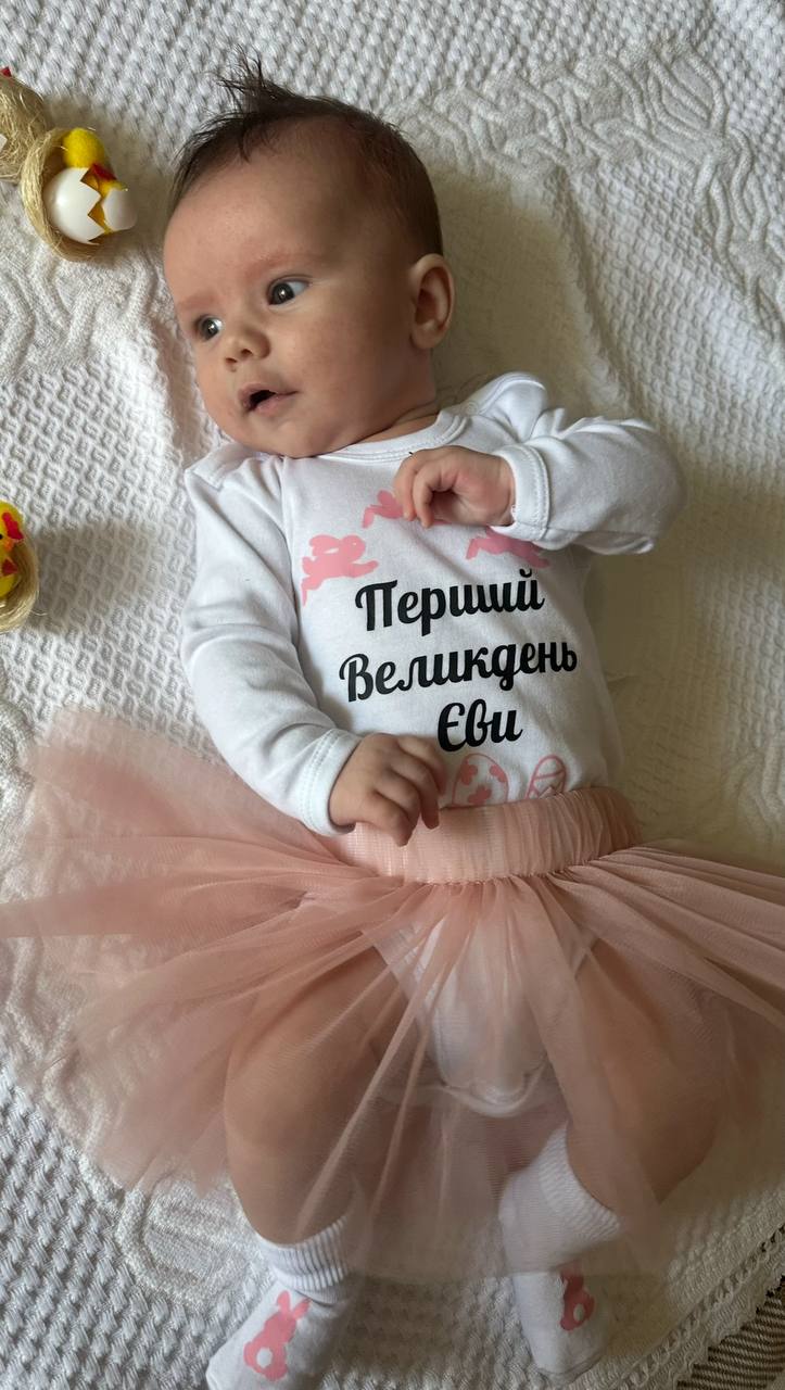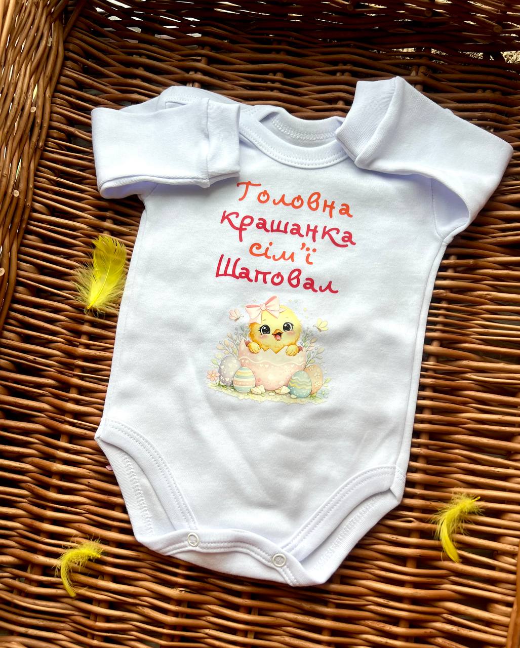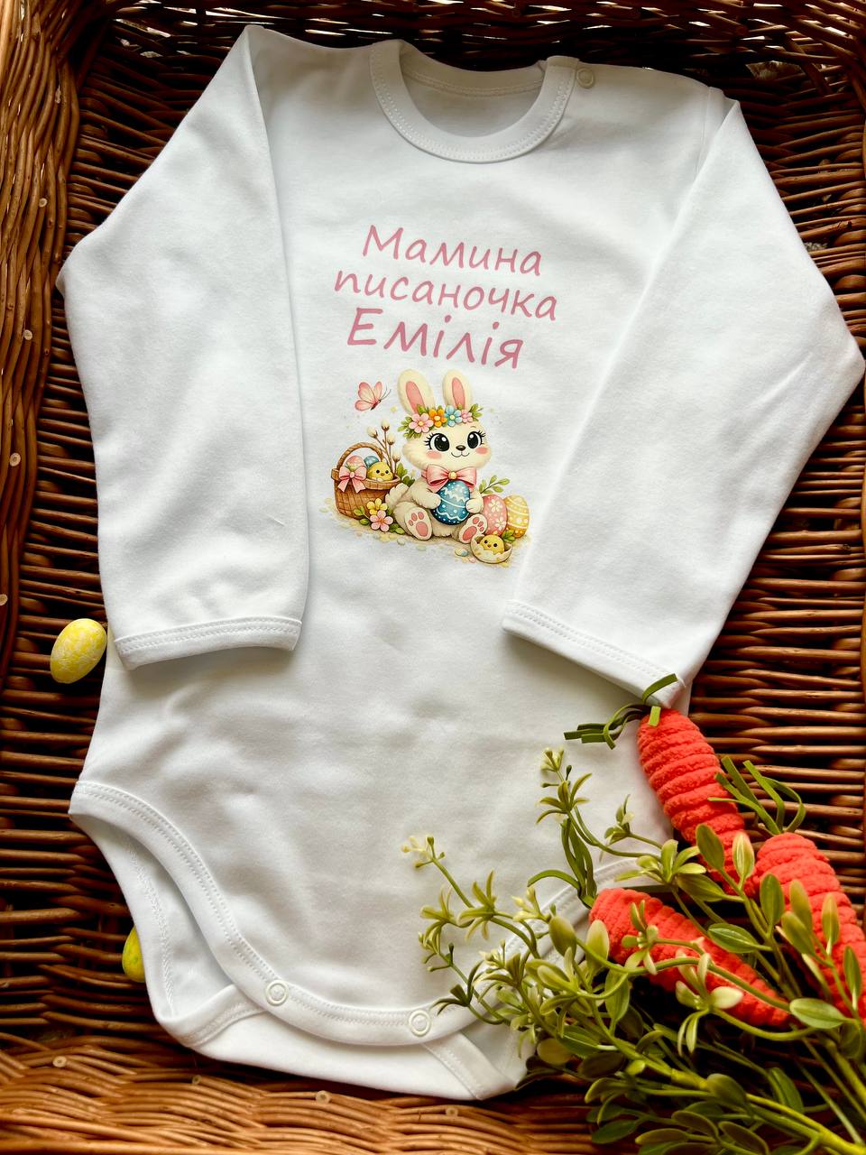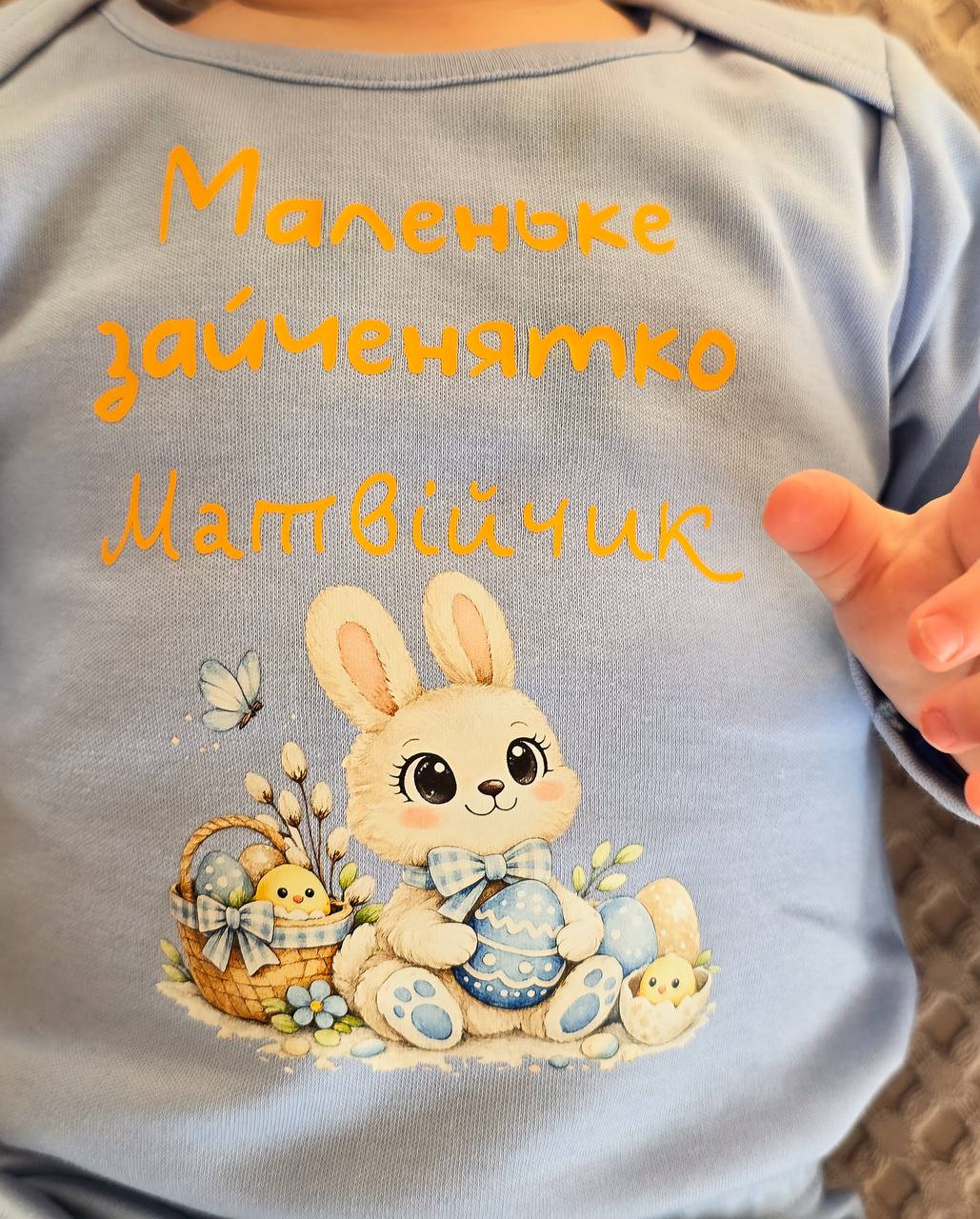 Одяг декорується індивідуальним написом, датою народження малюка і зображеннями крил, ангелів, а також побажаннями від хресних - методом термоперенесення.