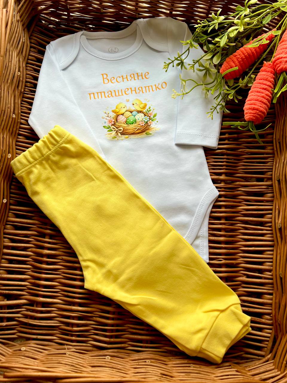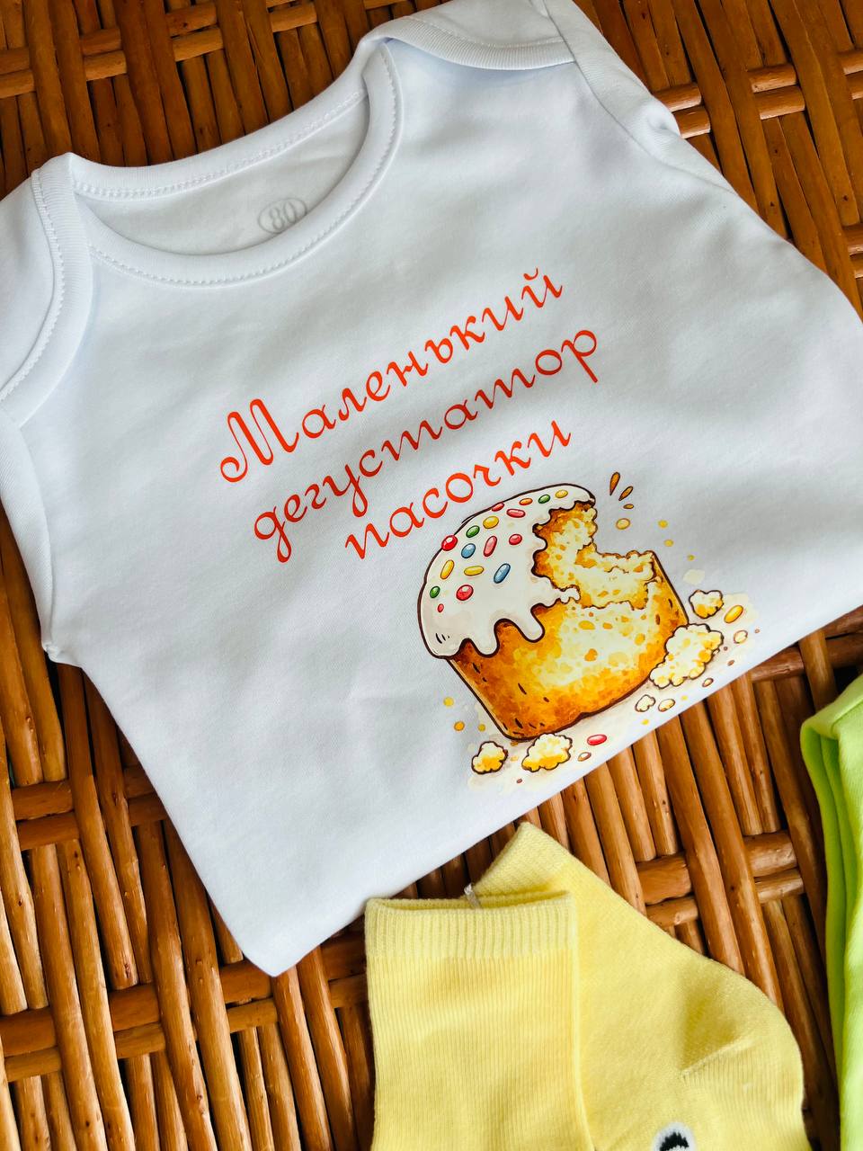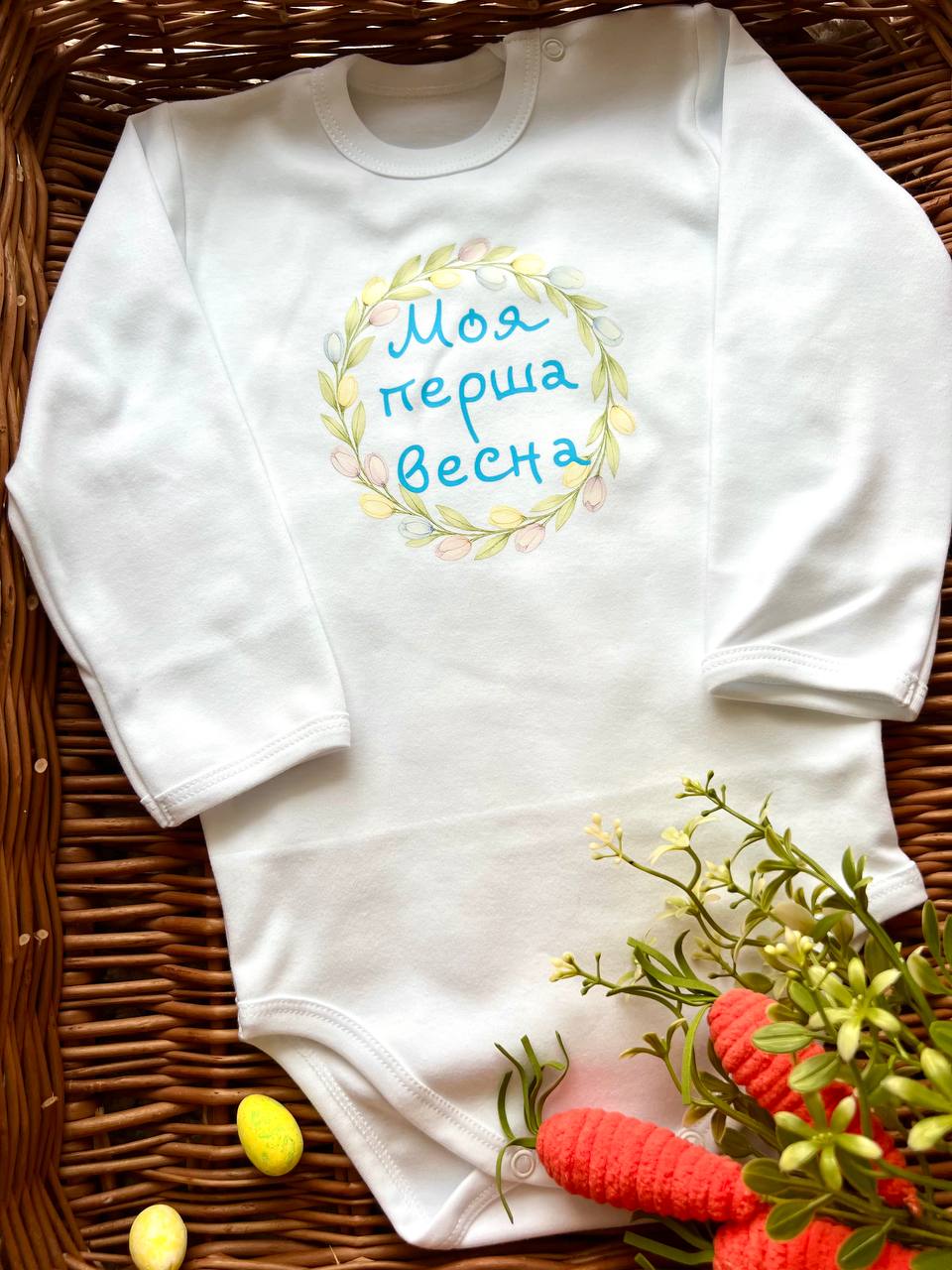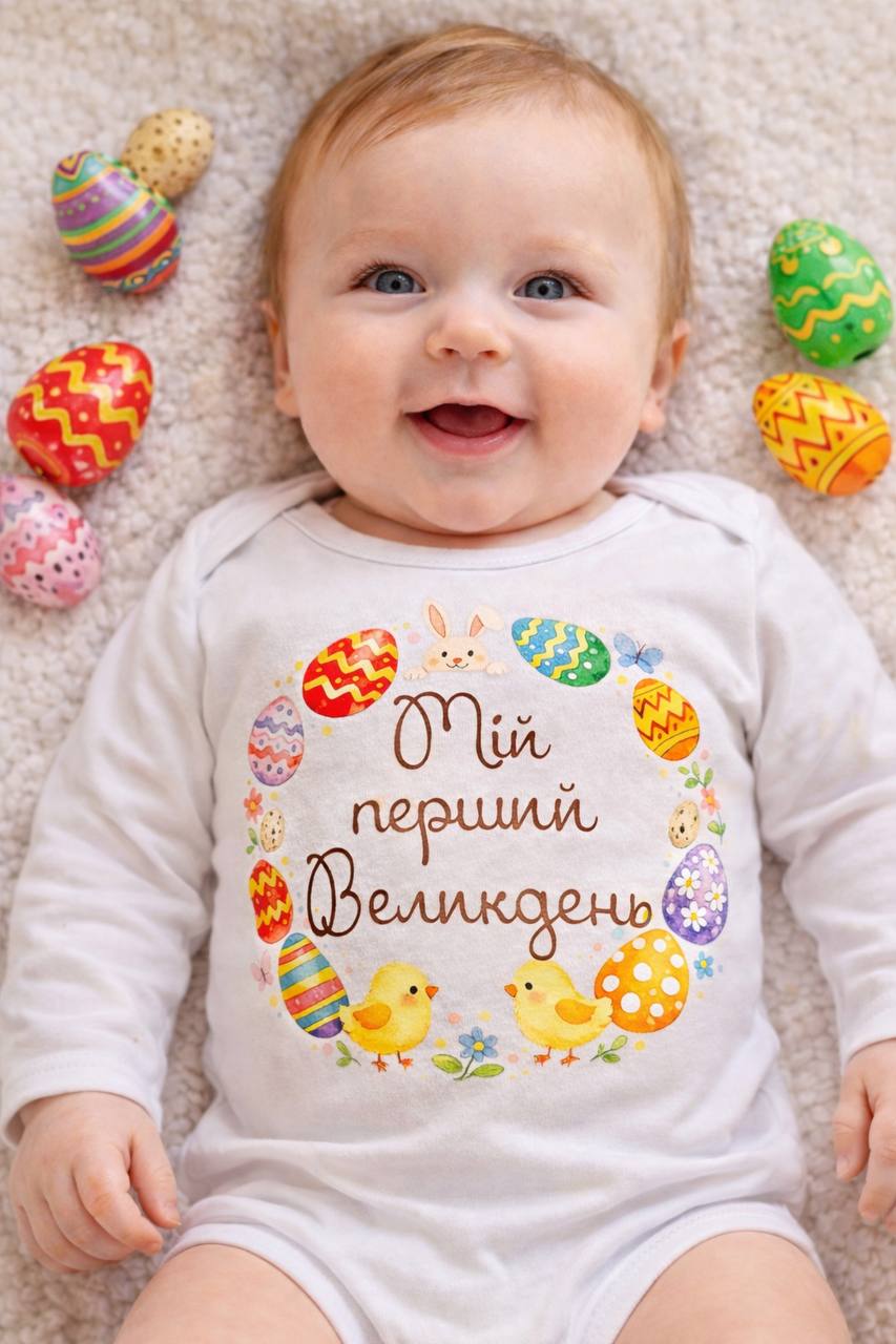 Одяг декорується індивідуальним написом, датою народження малюка і зображеннями крил, ангелів, а також побажаннями від хресних - методом термоперенесення.