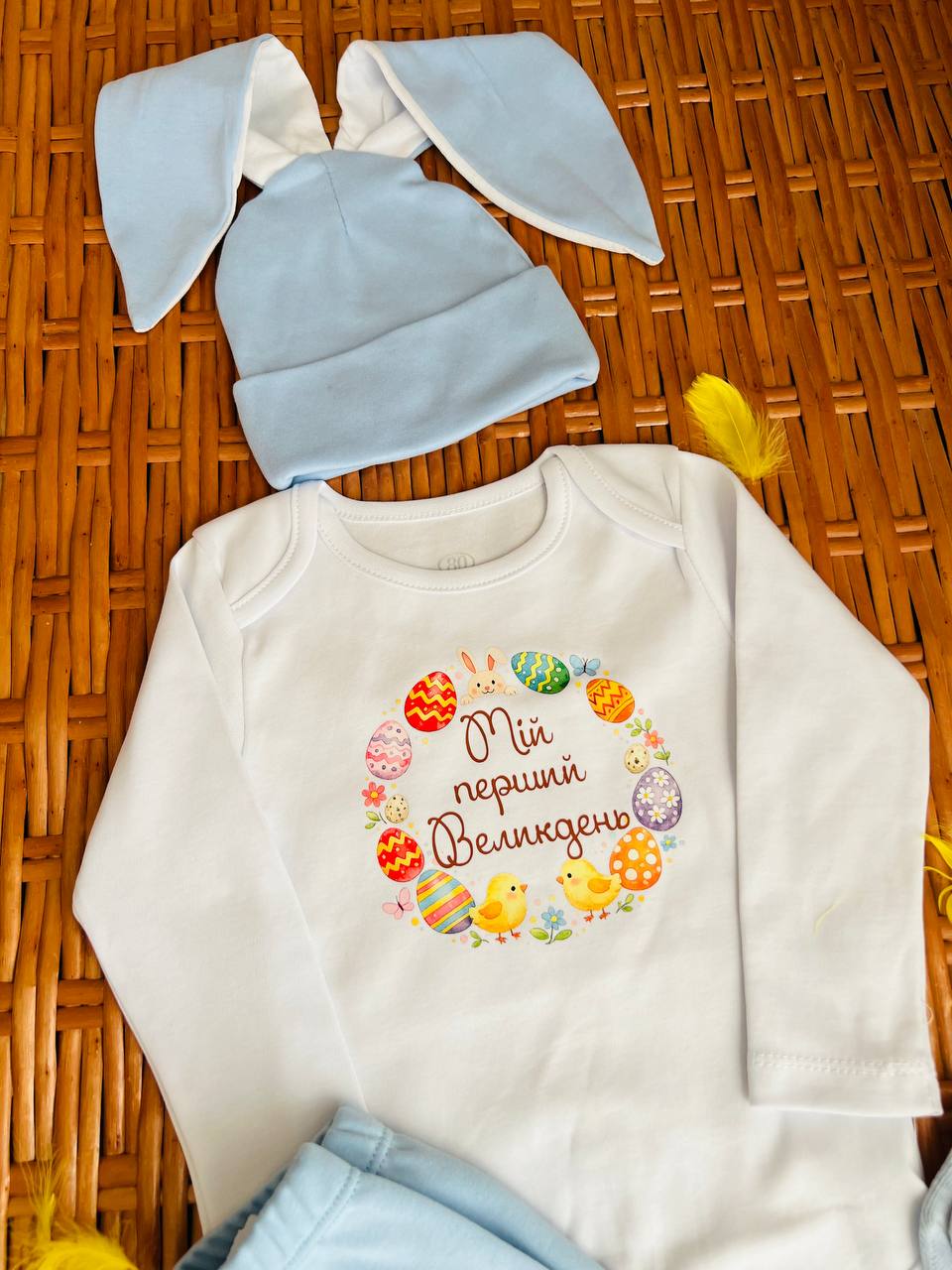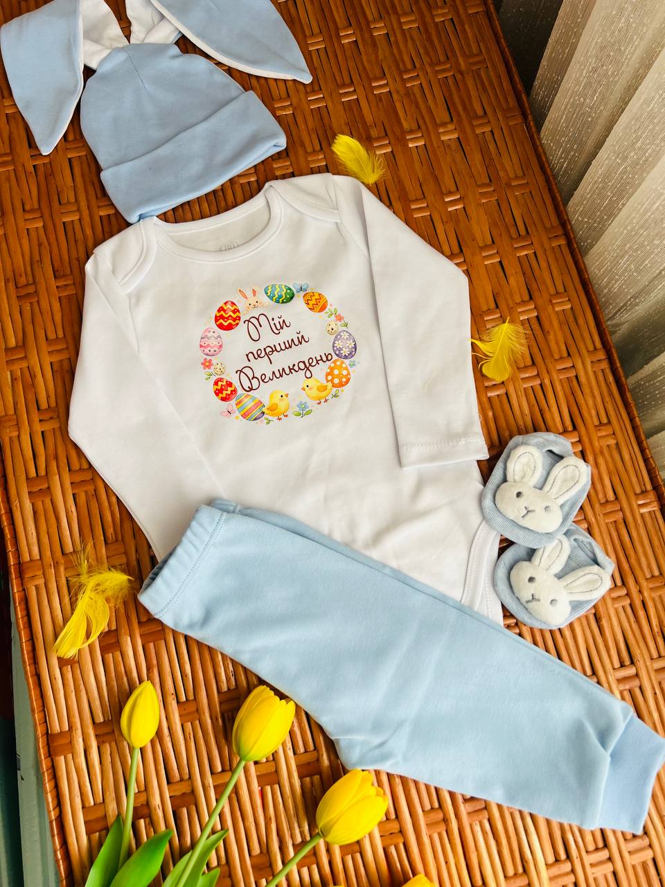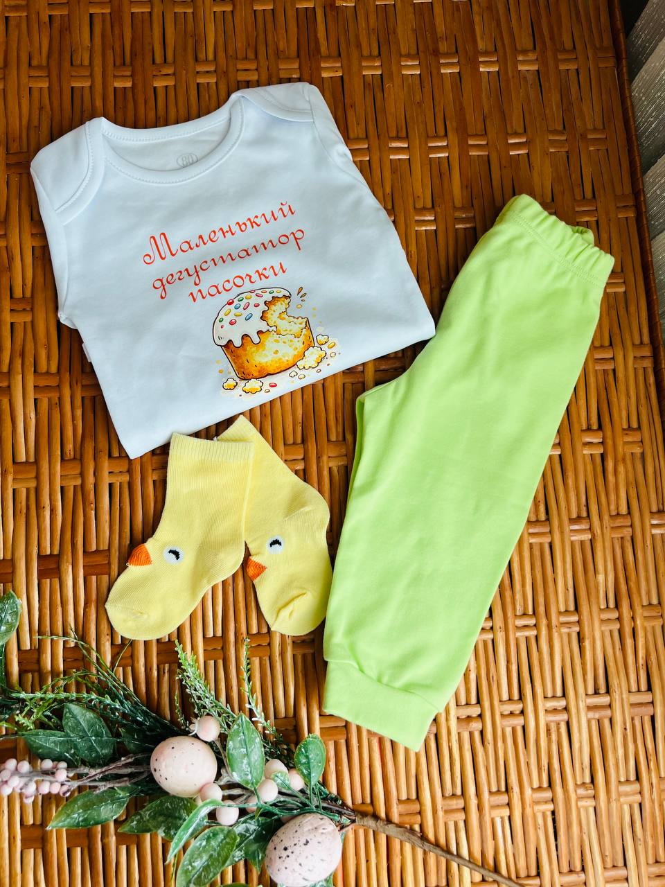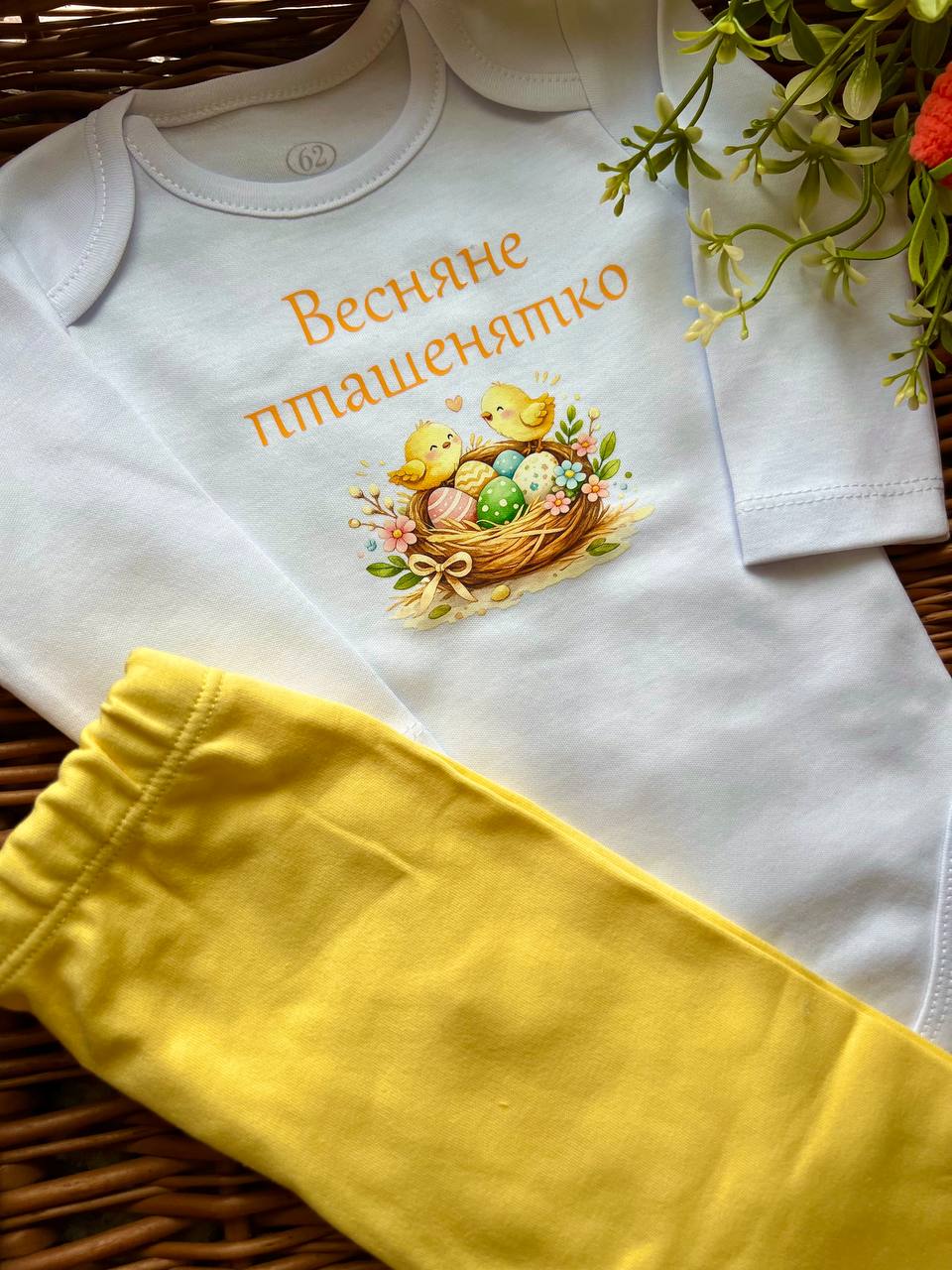 Одяг декорується індивідуальним написом, датою народження малюка і зображеннями крил, ангелів, а також побажаннями від хресних - методом термоперенесення.